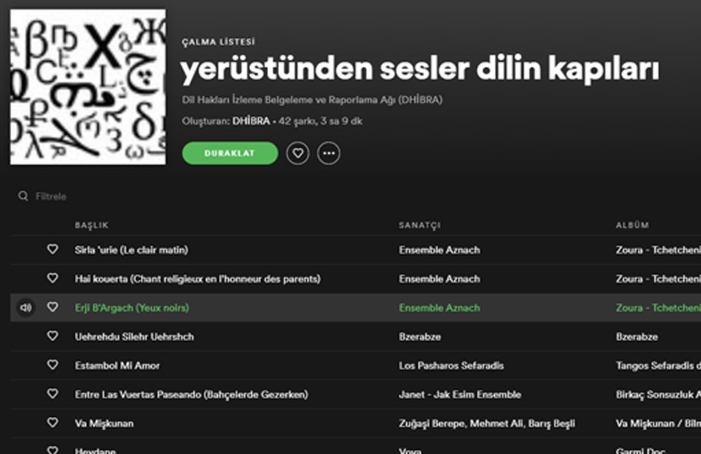 Dil Hakları İzleme, Belgeleme ve Raporlama Ağı (DHİBRA) açıklamasında Türkiye’nin 19 diliyle sesleniyoruz: Abazaca, Adığece (Batı), Adığece (Doğu), Arapça, Arnavutça, Boşnakça, Çeçence, Ermenice (Batı), Gürcüce, Hemşince, Kurmanci, Ladino, Lazca, Osetçe, Romeika, Rumca, Süryanice, Türkçe ve Zazaca.